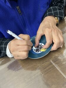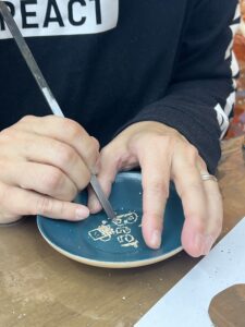 We began by transferring our chosen designs—either pre-made or our own—onto the plate.